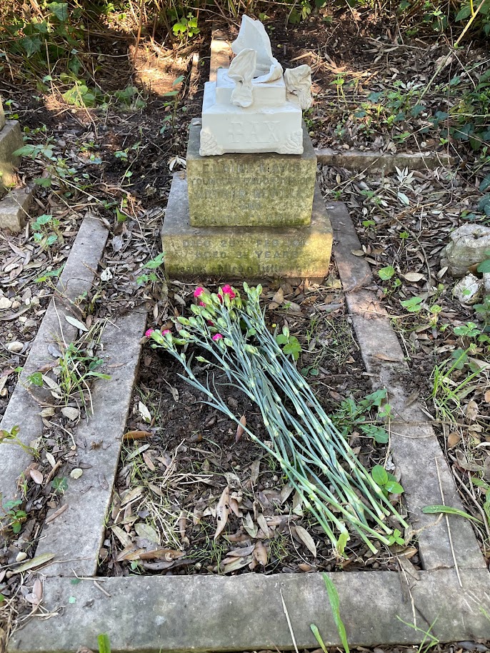 At a glanceAt a glanceSurname: ClarkeFirst name: ElaineOther Christian names: Mavis Gender: FemaleChildren: NoBurial number: 818Born: 0/8/1912Died: 25/02/1916Buried: 28/02/1916Heene Hallmark: NoCommonwealth War Grave: No The GraveThe graveCemetery area: SESCemetery row: 12Cemetery plot: 20what3words location: https://what3words.com/mild.guides.pillsBurial remains: Unknown The headstoneEndowed grave: NoHeadstone inscription: Elaine Mavis youngest daughter of Arthur Neville and Maude Clarke died 25th Feb 1916 aged 3 1/2 yrs "Jesus called a little child" Grave location map Life storyLife storyElaine Mavis Clarke was born in late 1912 in Worthing, Sussex. Her father was Derby born Arthur, a G.P.O. Clerk, and her mother was Maude Frances Somerset Tellick from Worthing. She had two sisters and died aged 3 years 6 months in 1916. Elaine was buried in Heene Cemetery, West Worthing, Sussex.Burial researcher: Pat Brownbill Further informationBirthDate born: 00/08/1912 DeathDeath (details)Date of death: 25/02/1916Age (at time of death): 3Cause of death: Broncho-PneumoniaAddress at time of death: Mondorf, Rugby Road, Worthing, Sussex, England Previous Random burial Next