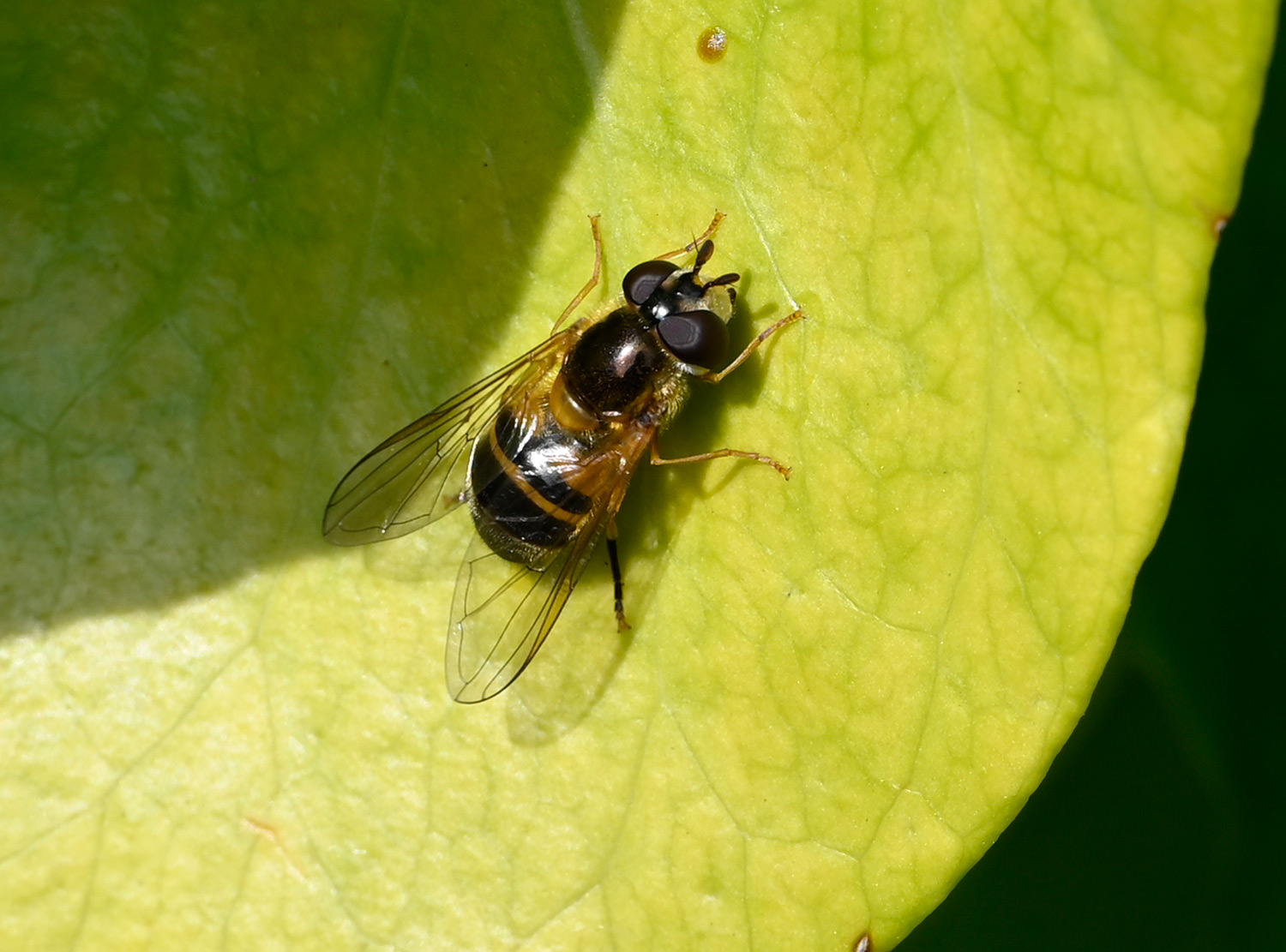 Epistrophe eligans have a distinctly brass-coloured thorax, and can be quite varied in colouration.